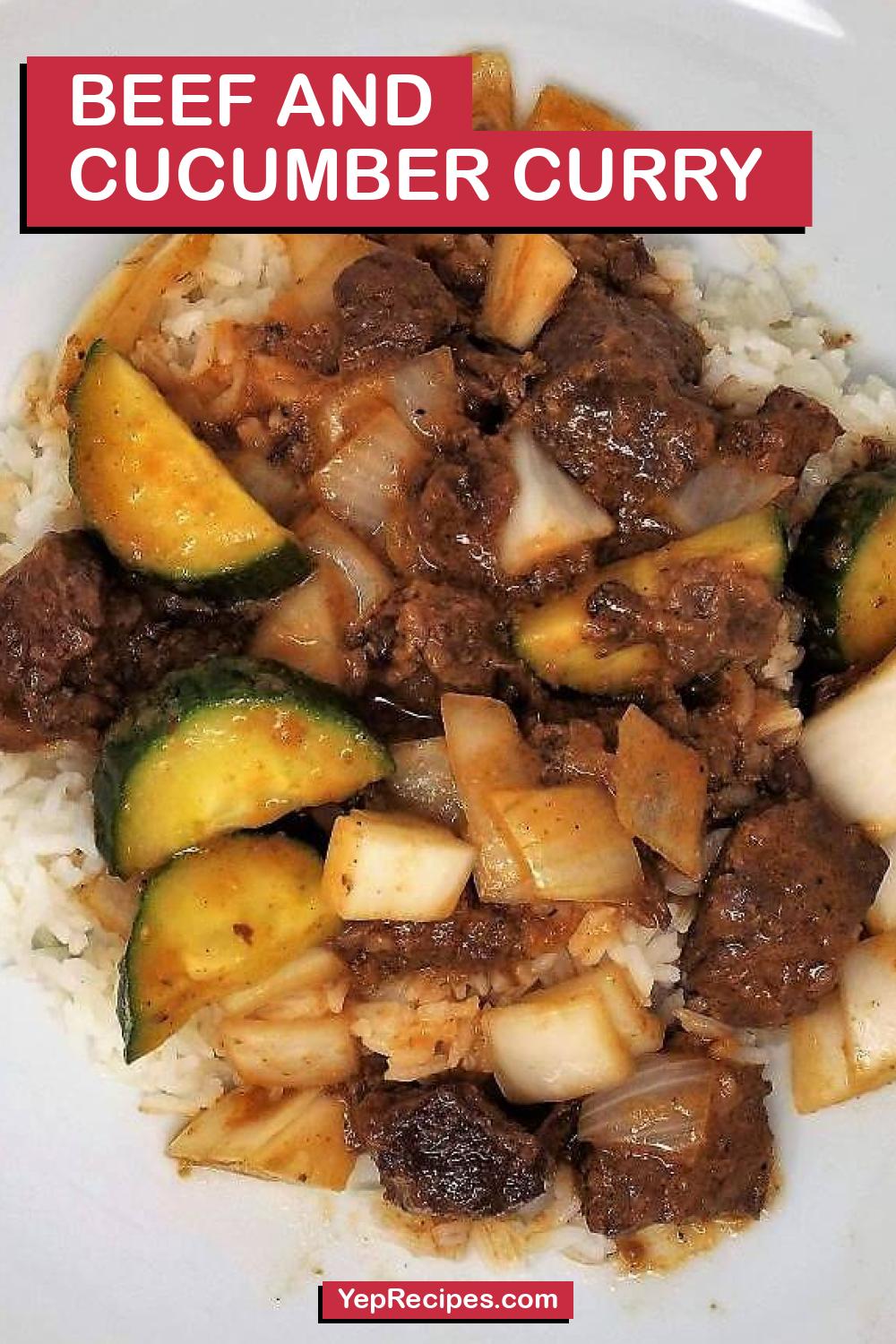 Fluff the rice with a fork. Serve the beef and cucumber curry over the rice.