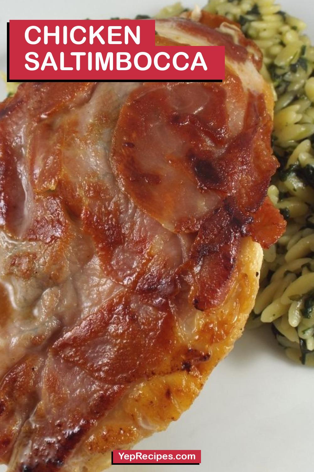 Pound the chicken breasts to flatten a bit and so theyre an even thickness. Generously season both sides of the chicken breasts with salt and pepper. Place 2 sage leaves on top of each chicken breast and then press 2 pieces of prosciutto on top of each breast making sure the prosciutto sticks to the chicken.
