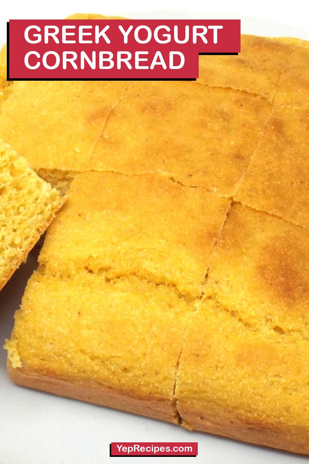 A fluffy and tangy cornbread made with flour, cornmeal, egg, Greek yogurt, and milk.