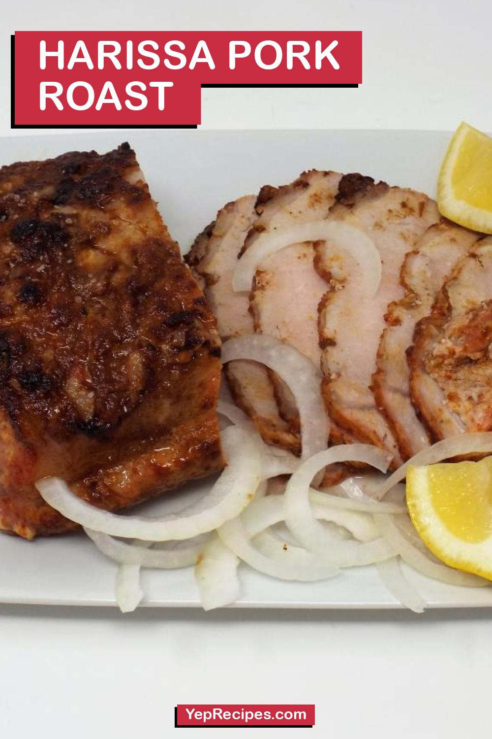 In a small bowl mix the harissa paste, lemon juice, garlic, cumin, coriander, salt, pepper, and olive oil. Rub the mixture all over the pork.