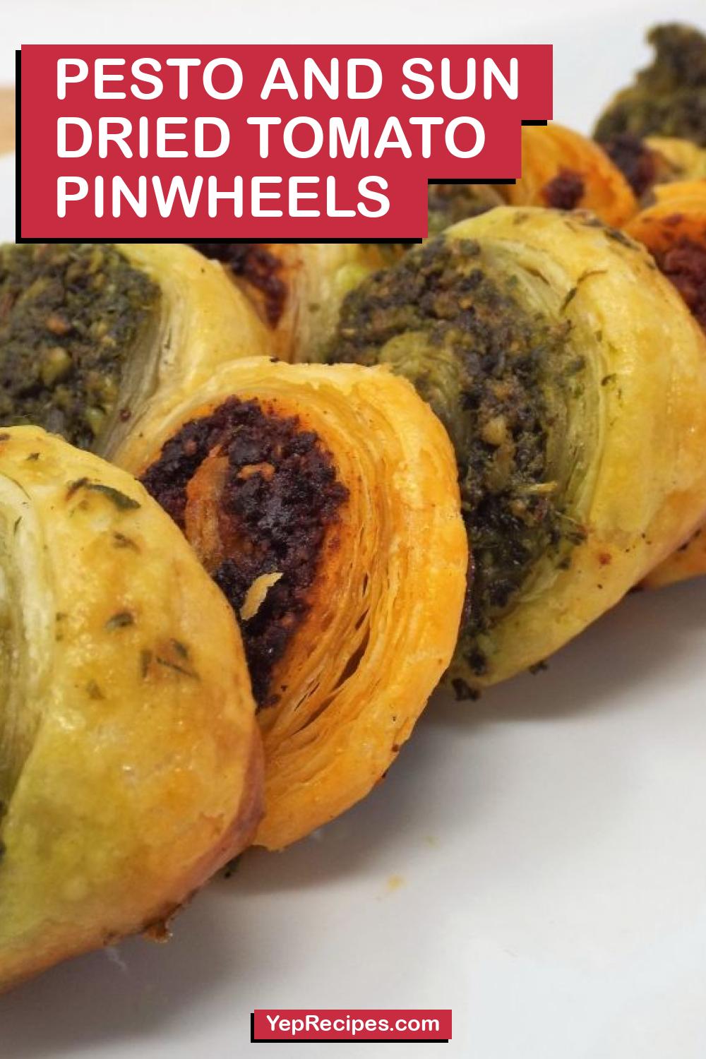 Puff pastry rolled with sun dried tomatoes and basil pestos.