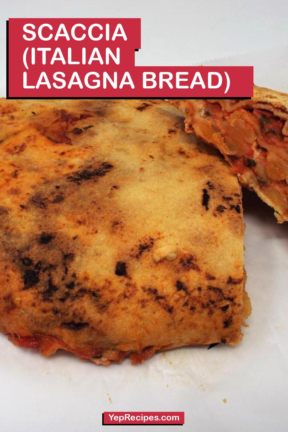 A Sicilian dish consisting of thin layers of semolina dough layered with filling. This Scaccia is filled with ricotta cheese, tomatoes, and fresh basil.