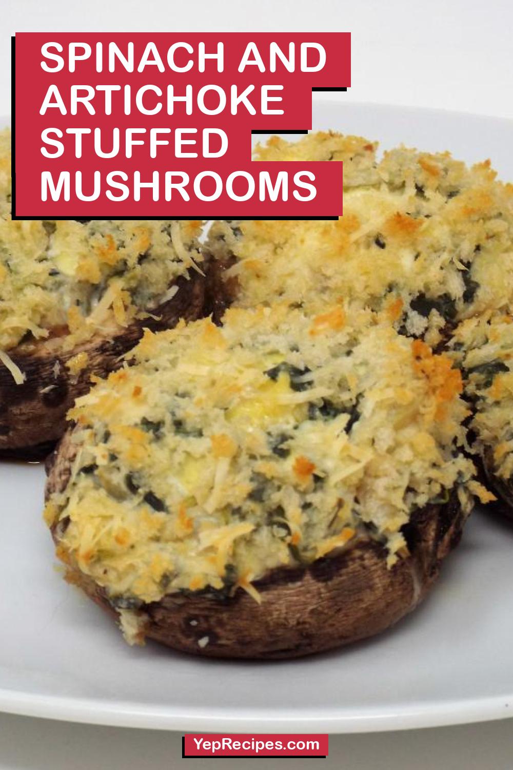 Creamy spinach and artichoke dip stuffed into mushroom caps and topped with Parmesan panko breadcrumbs.